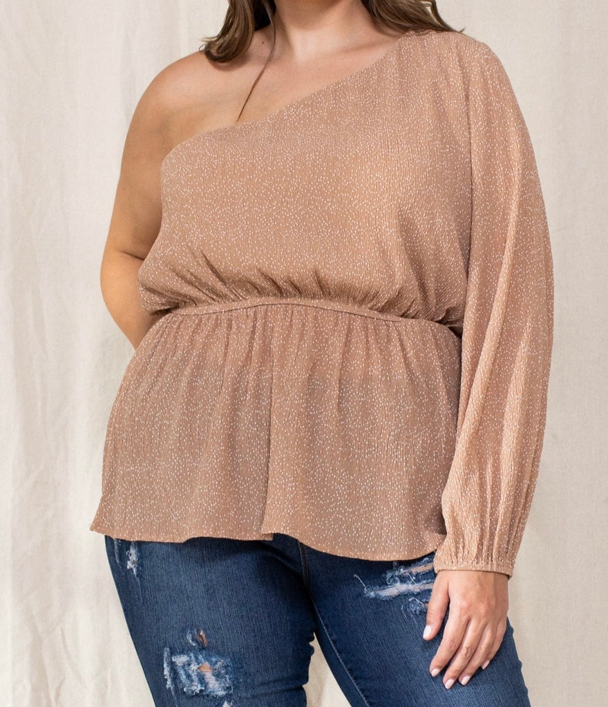 Blusa taupe/puntos off shoulder 3902